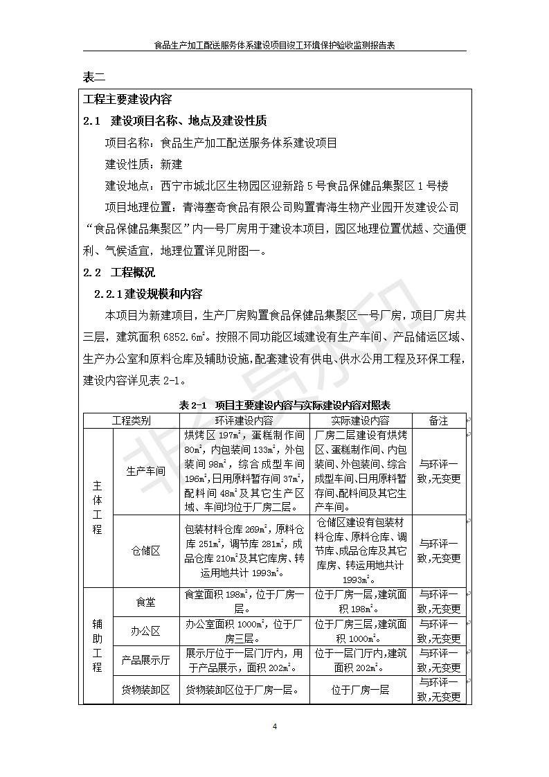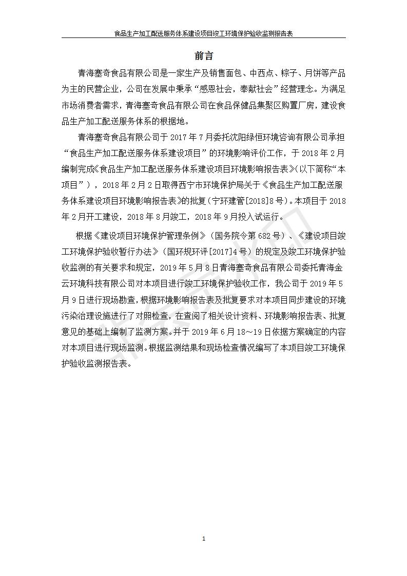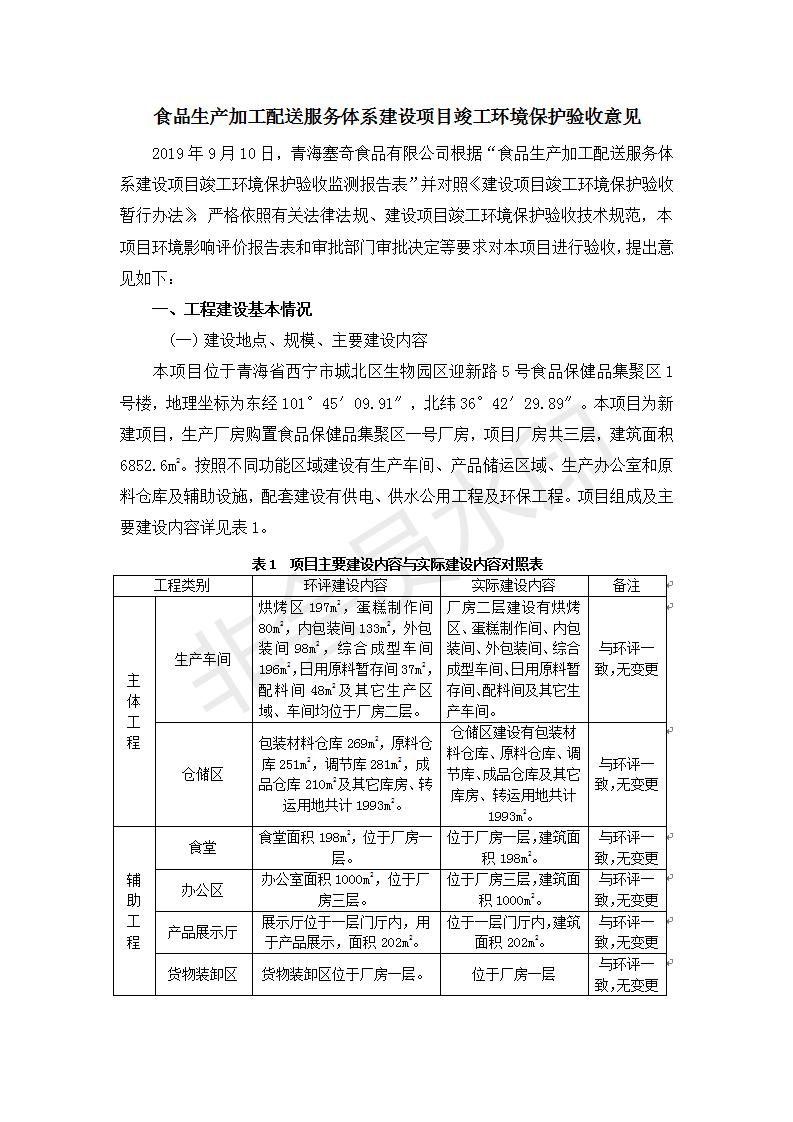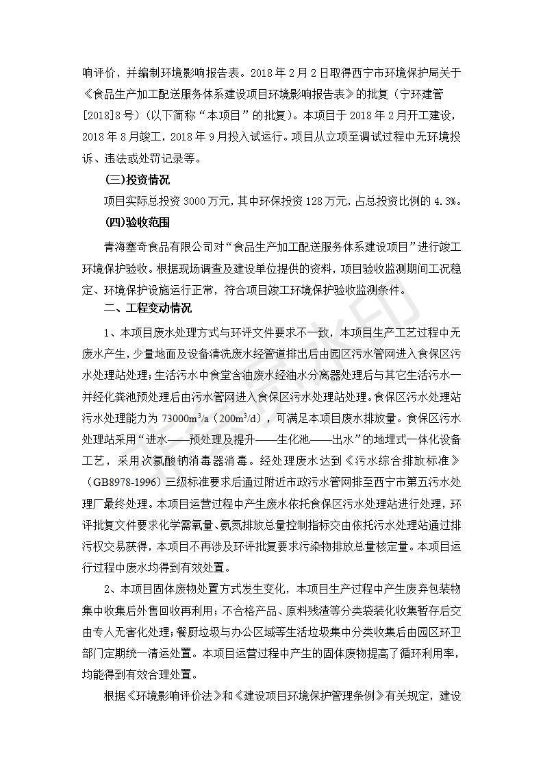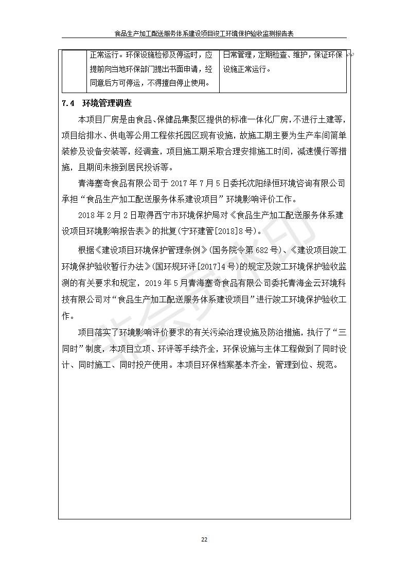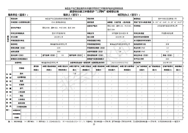 根據(jù)中華人民共和國國務(wù)院令第682號《國務(wù)院關(guān)于修改〈建設(shè)項目環(huán)境保護(hù)管理條例〉的決定》和《建設(shè)項目竣工環(huán)境保護(hù)驗(yàn)收暫行辦法》(國務(wù)院令682號),食品生產(chǎn)加工配送服務(wù)體系建設(shè)項目(包括竣工環(huán)境保護(hù)驗(yàn)收監(jiān)測報告表和驗(yàn)收意見)公示如下。 一、項目名稱:食品生產(chǎn)加工配送服務(wù)體系建設(shè)項目 二、地點(diǎn):西寧市城北區(qū)生物園區(qū)迎新路5號食品保健品集聚區(qū)1號樓 六、聯(lián)系電 話:0971-6515411 七、公示時間:二〇一九年九月二十日至二〇一九年十月二十二日 公示期間,對上述公示內(nèi)容如有異議,請以書面形式反饋,個人須署真實(shí)姓名,單位須加蓋公章。