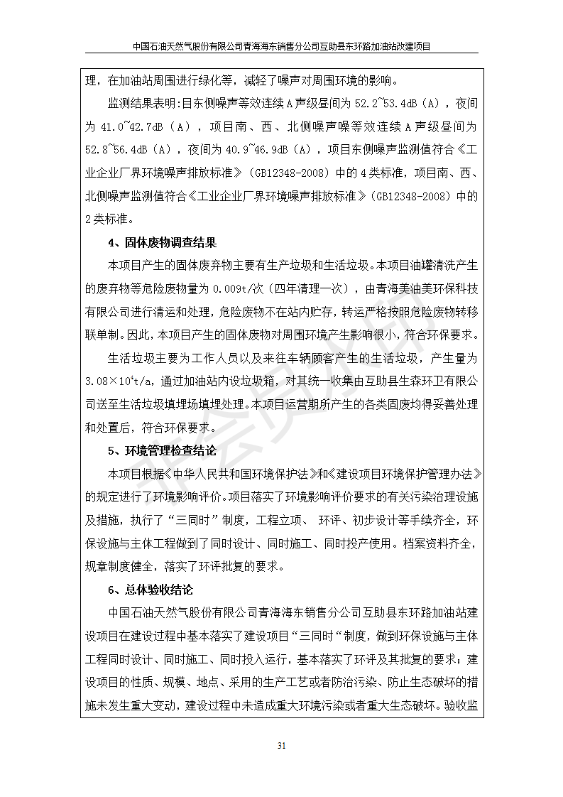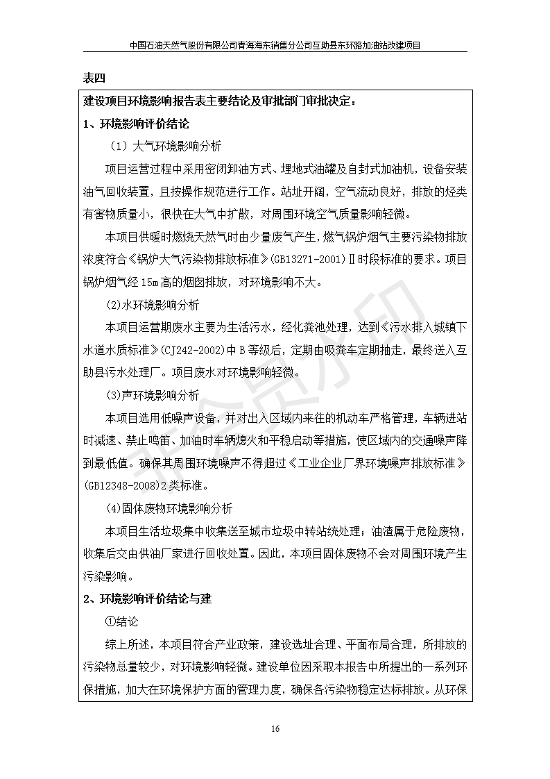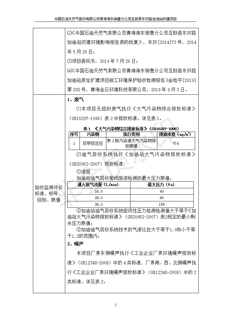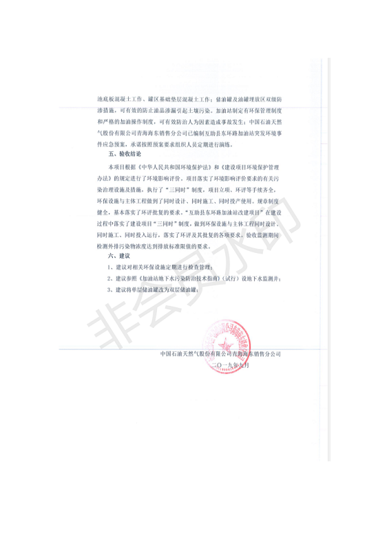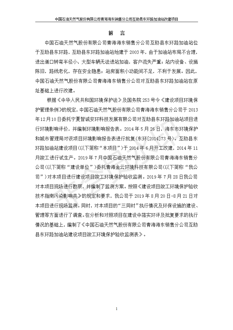 | 上一篇:互助縣東和加油站原址擴建項目 竣工環(huán)境保護驗收監(jiān)測報告表公示 | 下一篇:互助縣沙塘川加油站建設(shè)項目竣工環(huán)境保護驗收監(jiān)測報告表 |