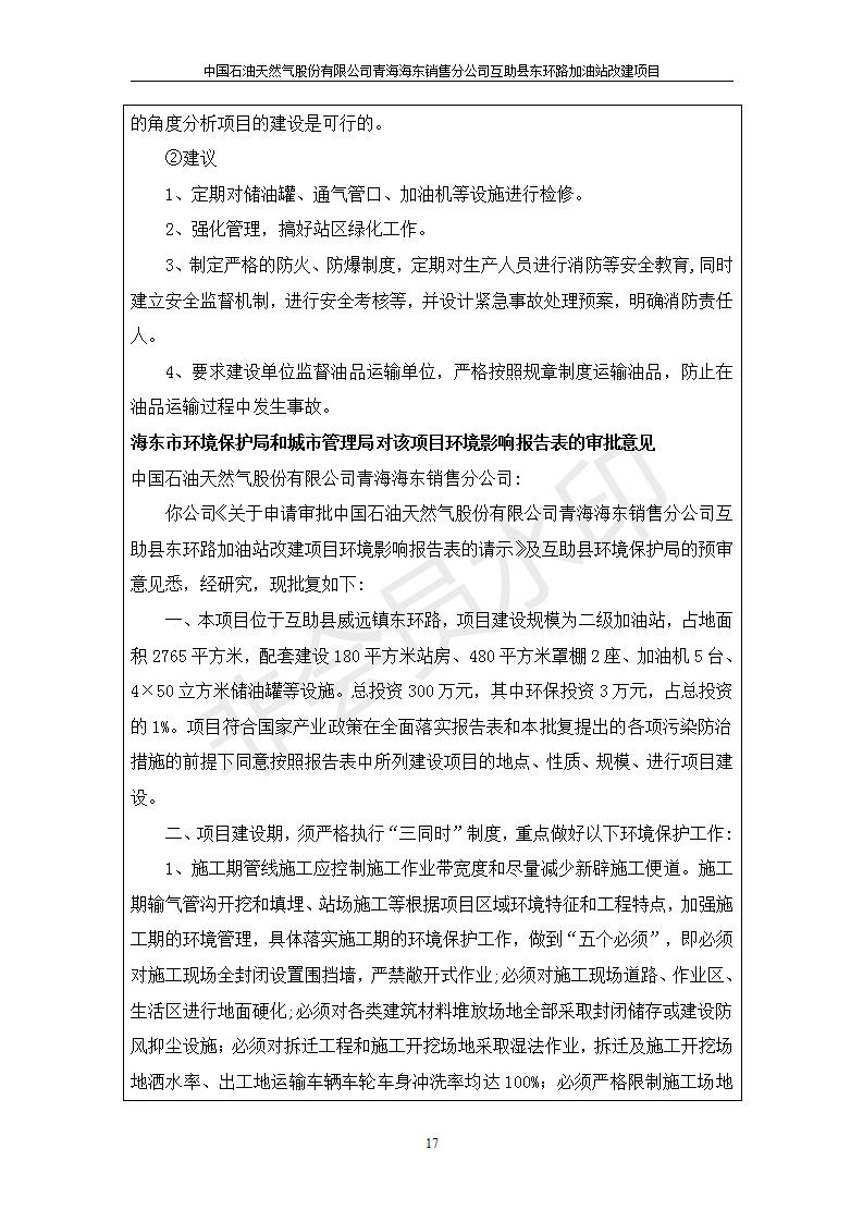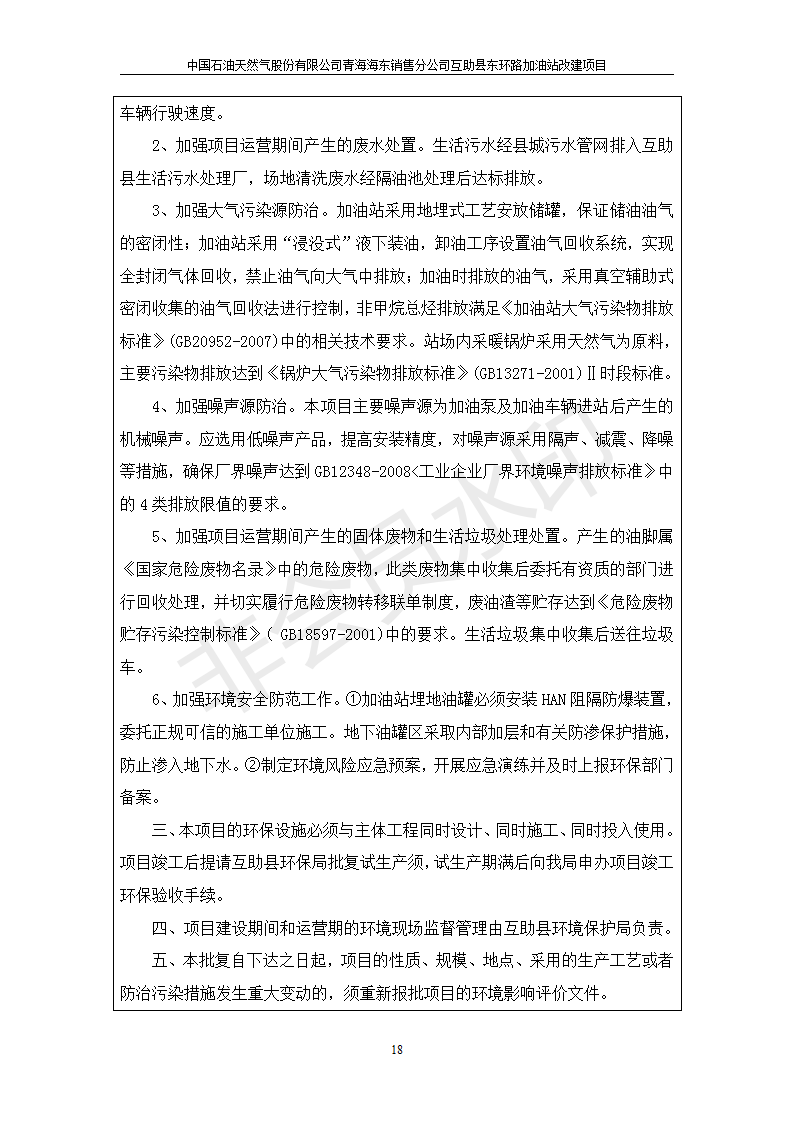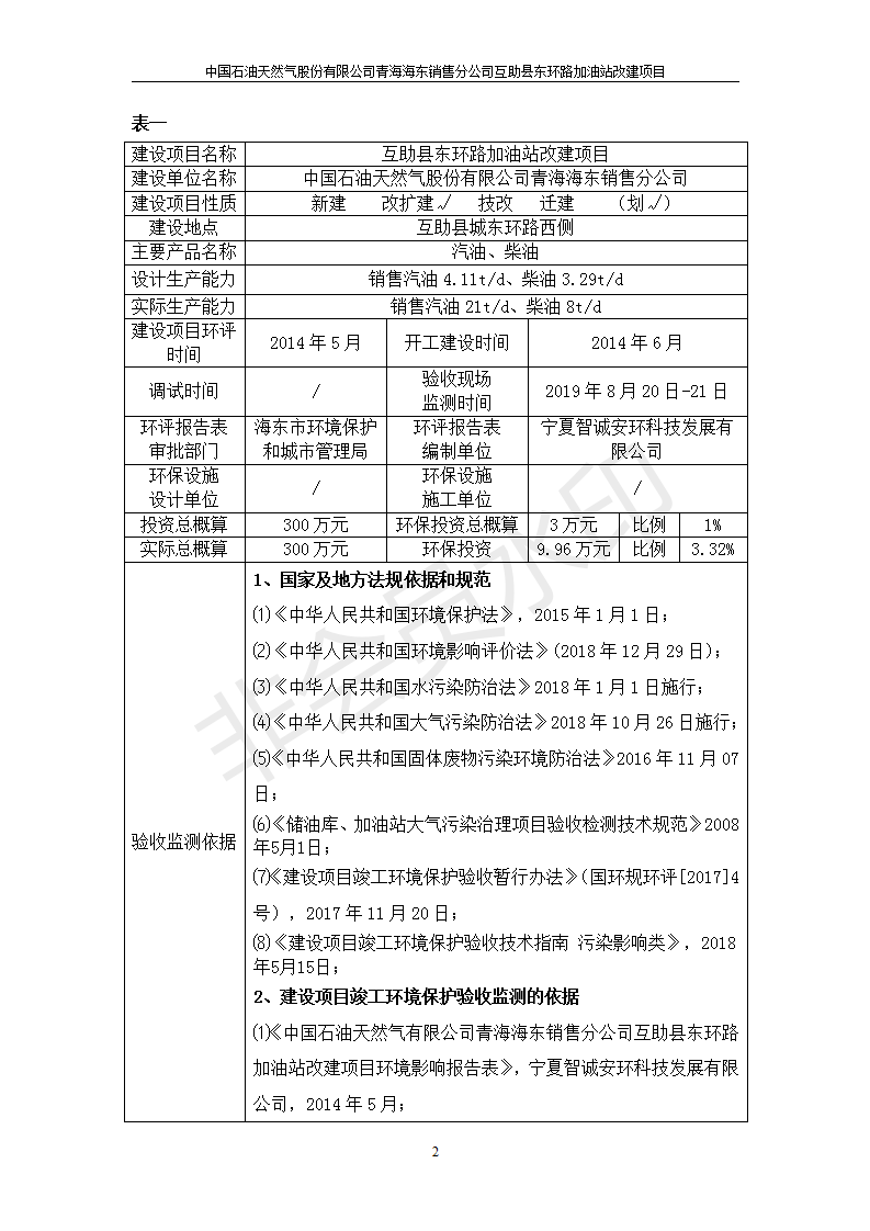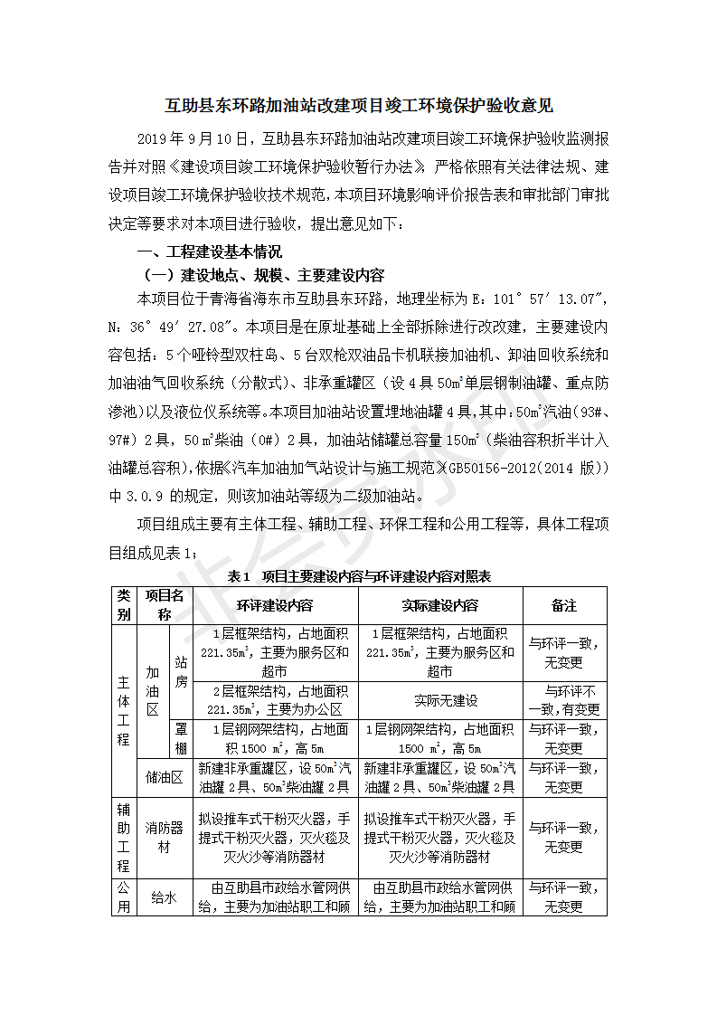 | 上一篇:互助縣東和加油站原址擴建項目 竣工環(huán)境保護驗收監(jiān)測報告表公示 | 下一篇:互助縣沙塘川加油站建設(shè)項目竣工環(huán)境保護驗收監(jiān)測報告表 |