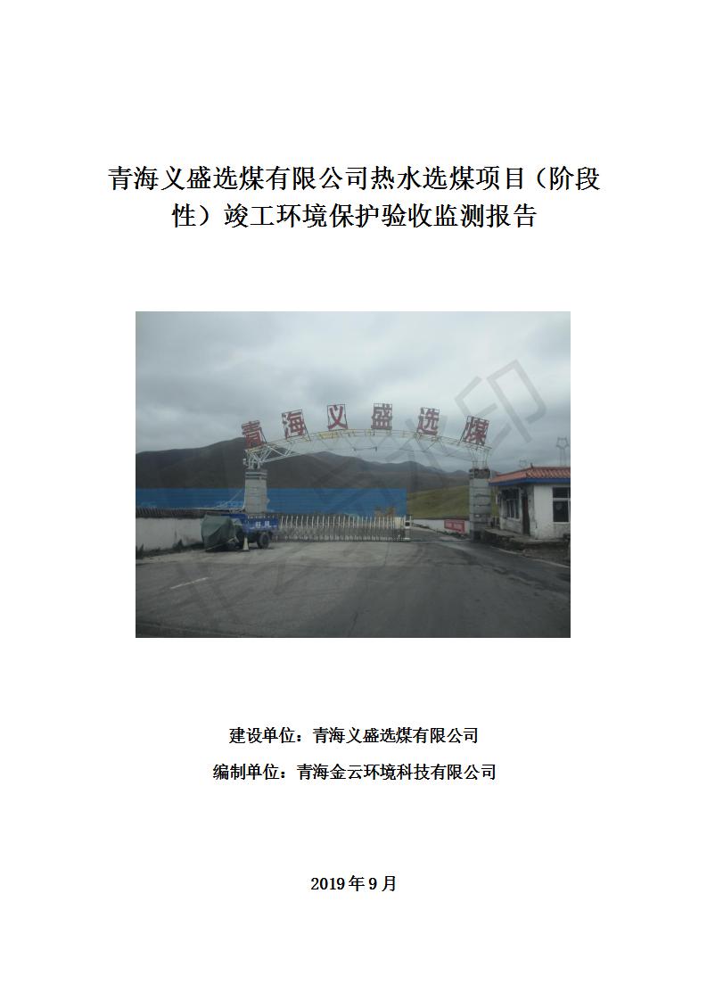 青海義盛選煤有限公司熱水選煤項(xiàng)目(階段性)竣工環(huán)境保護(hù)驗(yàn)收發(fā)布日期:(2019-11-12) 點(diǎn)擊次數(shù):2142 |