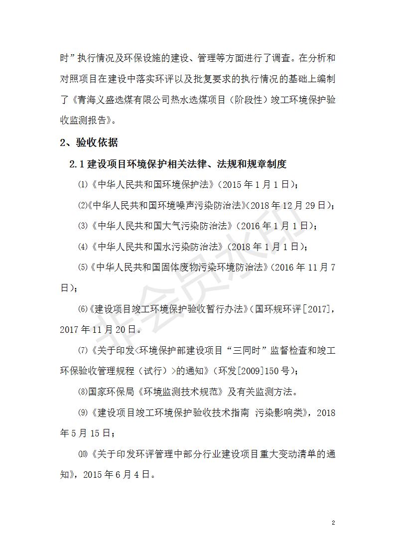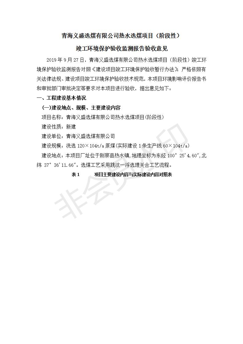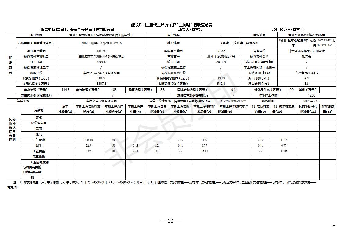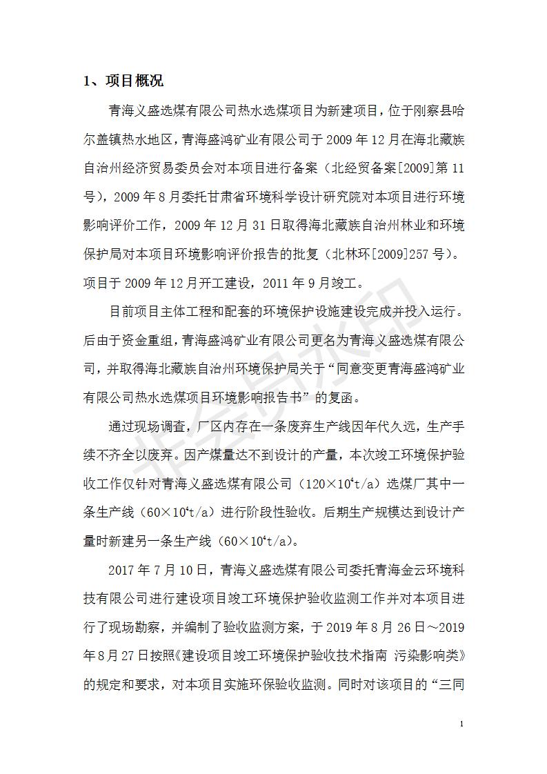 根據(jù)中華人民共和國(guó)國(guó)務(wù)院令第682號(hào)《國(guó)務(wù)院關(guān)于修改〈建設(shè)項(xiàng)目環(huán)境保護(hù)管理?xiàng)l例〉的決定》和《建設(shè)項(xiàng)目竣工環(huán)境保護(hù)驗(yàn)收暫行辦法》(國(guó)務(wù)院令682號(hào)),青海義盛選煤有限公司熱水選煤項(xiàng)目(階段性)竣工環(huán)境保護(hù)驗(yàn)收監(jiān)測(cè)報(bào)告(包括竣工環(huán)境保護(hù)驗(yàn)收監(jiān)測(cè)報(bào)告和驗(yàn)收意見)公示如下。 一、項(xiàng)目名稱:青海義盛選煤有限公司熱水選煤項(xiàng)目(階段性) 二、地點(diǎn):剛察縣熱水鎮(zhèn) 此外還包括公用工程系統(tǒng)、消防系統(tǒng)及輔助生產(chǎn)設(shè)施等。 五、聯(lián)系人:張工六、聯(lián)系電話:0971-6515411 七、公示時(shí)間:二〇一九年十一月十二日至二〇一九年十二月九日