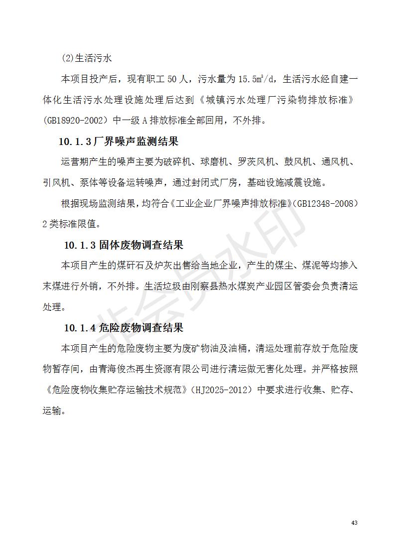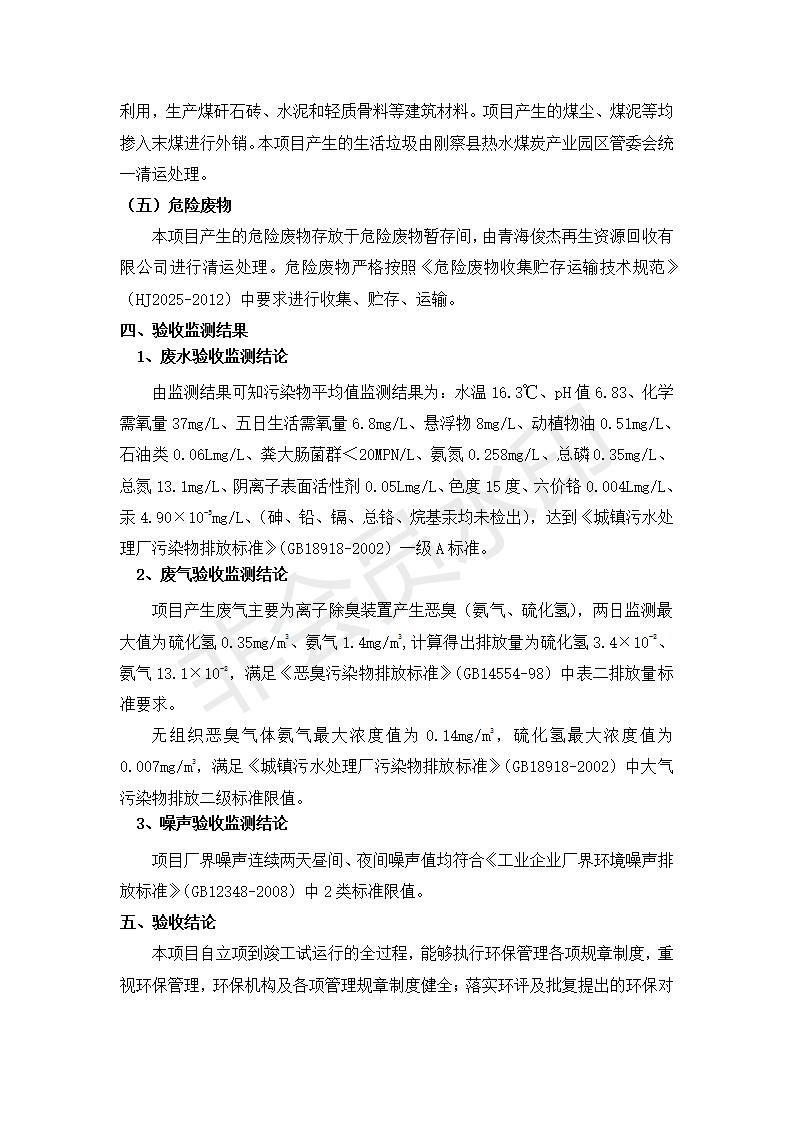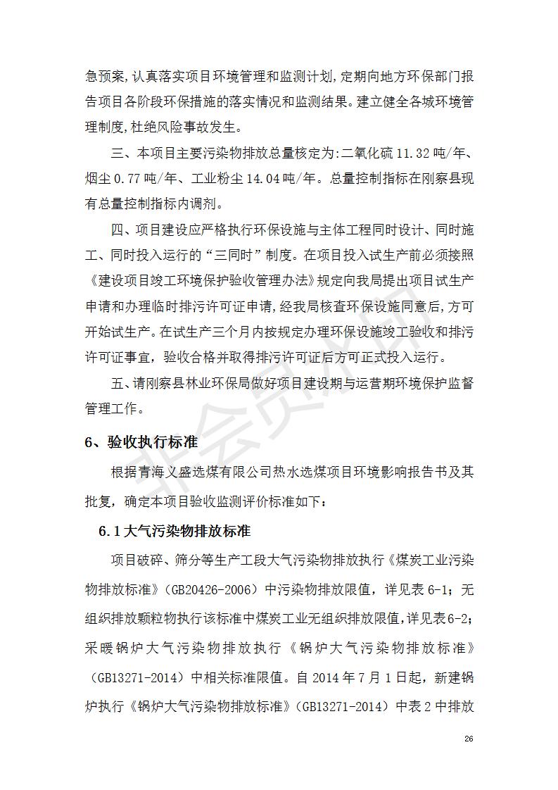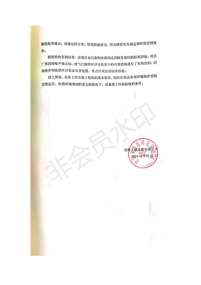 根據(jù)中華人民共和國(guó)國(guó)務(wù)院令第682號(hào)《國(guó)務(wù)院關(guān)于修改〈建設(shè)項(xiàng)目環(huán)境保護(hù)管理?xiàng)l例〉的決定》和《建設(shè)項(xiàng)目竣工環(huán)境保護(hù)驗(yàn)收暫行辦法》(國(guó)務(wù)院令682號(hào)),青海義盛選煤有限公司熱水選煤項(xiàng)目(階段性)竣工環(huán)境保護(hù)驗(yàn)收監(jiān)測(cè)報(bào)告(包括竣工環(huán)境保護(hù)驗(yàn)收監(jiān)測(cè)報(bào)告和驗(yàn)收意見)公示如下。 一、項(xiàng)目名稱:青海義盛選煤有限公司熱水選煤項(xiàng)目(階段性) 二、地點(diǎn):剛察縣熱水鎮(zhèn) 此外還包括公用工程系統(tǒng)、消防系統(tǒng)及輔助生產(chǎn)設(shè)施等。 五、聯(lián)系人:張工六、聯(lián)系電話:0971-6515411 七、公示時(shí)間:二〇一九年十一月十二日至二〇一九年十二月九日