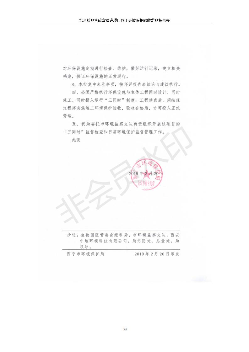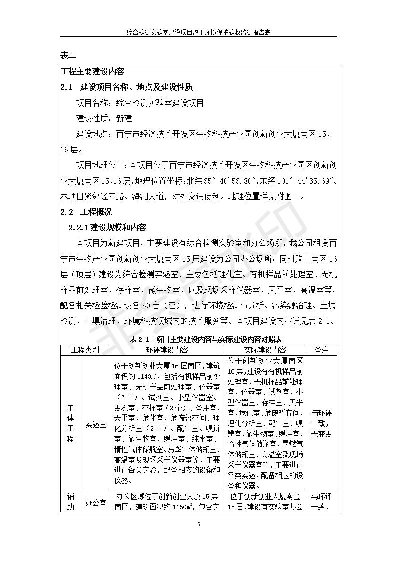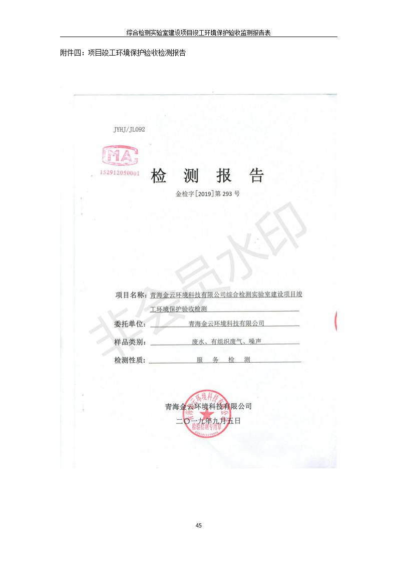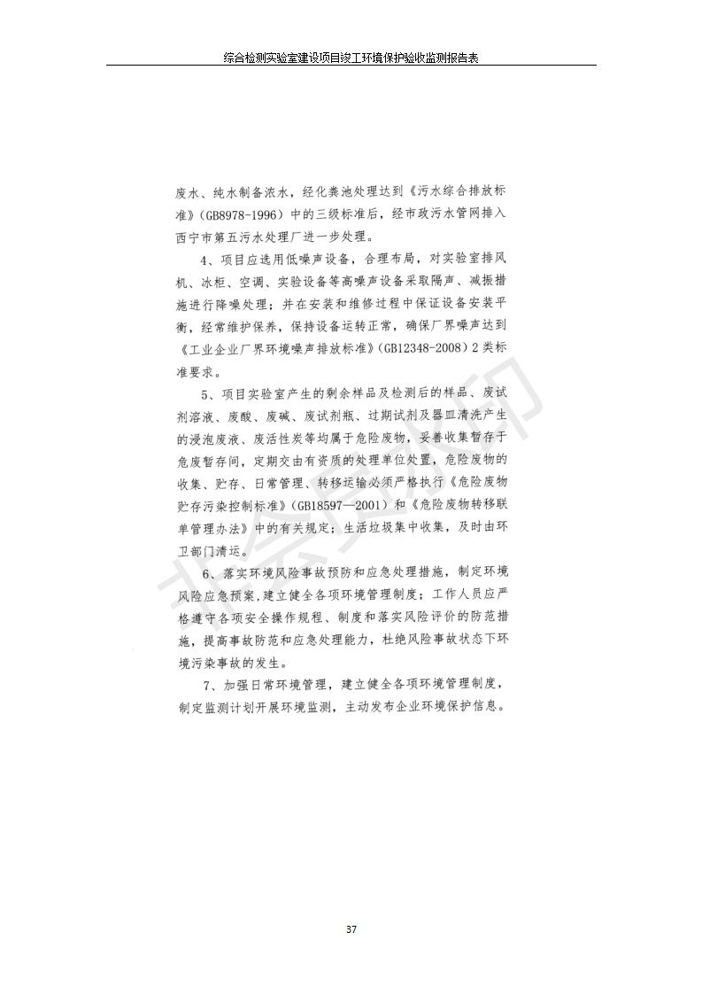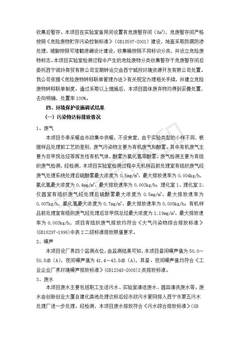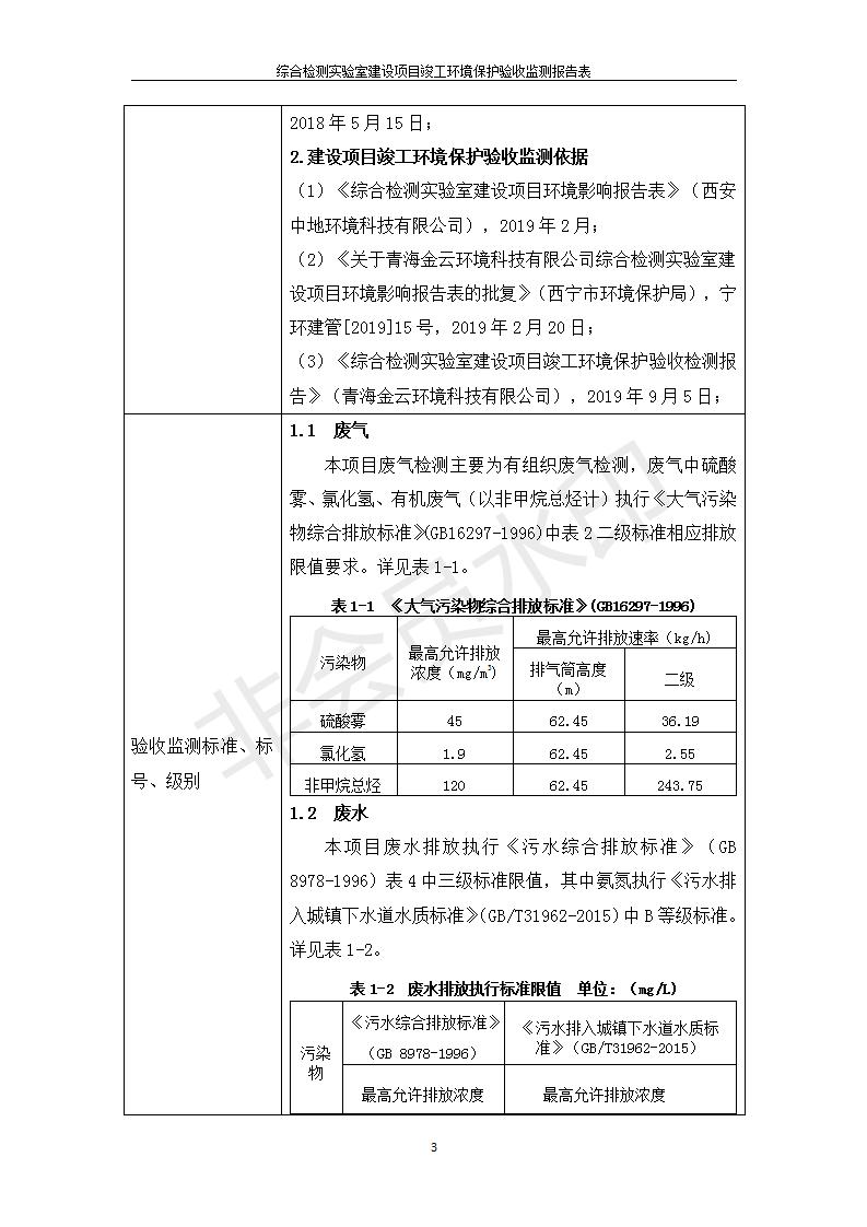 根據(jù)中華人民共和國國務(wù)院令第682號《國務(wù)院關(guān)于修改〈建設(shè)項(xiàng)目環(huán)境保護(hù)管理?xiàng)l例〉的決定》和《建設(shè)項(xiàng)目竣工環(huán)境保護(hù)驗(yàn)收暫行辦法》(國務(wù)院令682號),綜合檢測實(shí)驗(yàn)室建設(shè)項(xiàng)目(包括竣工環(huán)境保護(hù)驗(yàn)收監(jiān)測報告表和驗(yàn)收意見)公示如下。 一、項(xiàng)目名稱:綜合檢測實(shí)驗(yàn)室建設(shè)項(xiàng)目 二、地點(diǎn):西寧市經(jīng)濟(jì)技術(shù)開發(fā)區(qū)生物科技產(chǎn)業(yè)園區(qū)創(chuàng)新創(chuàng)業(yè)大廈南區(qū)15、16層 六、聯(lián)系電話:0971-6515411 七、公示時間:二〇一九年十一月十九日至二〇一九年十二月十六日 公示期間,對上述公示內(nèi)容如有異議,請以書面形式反饋,個人須署真實(shí)姓名,單位須加蓋公章。
