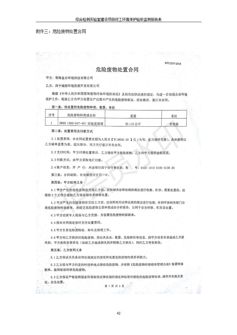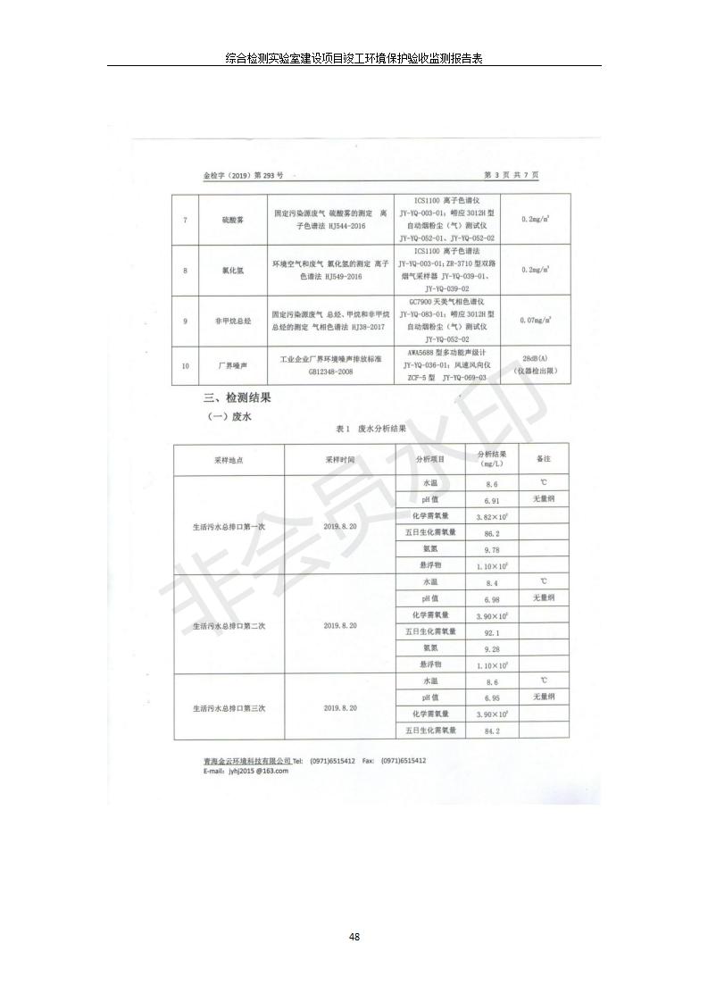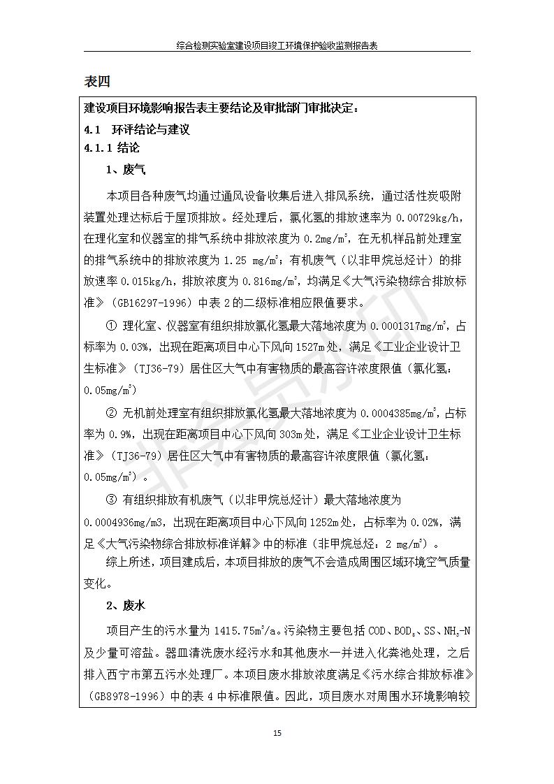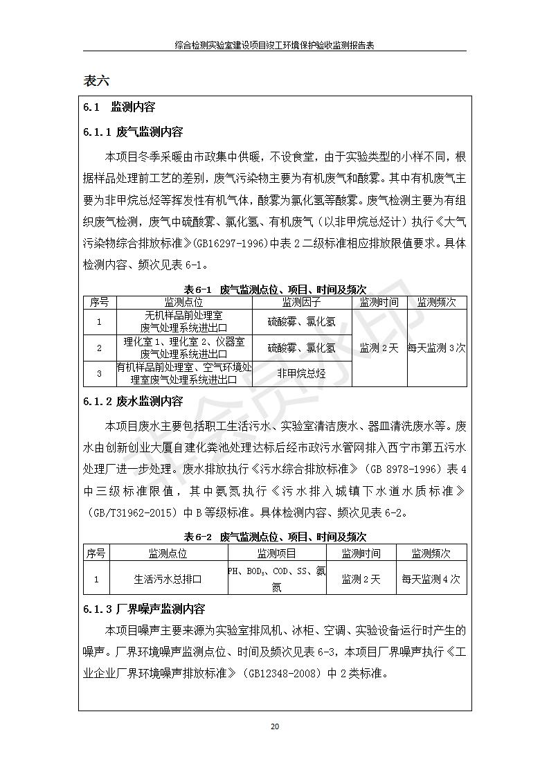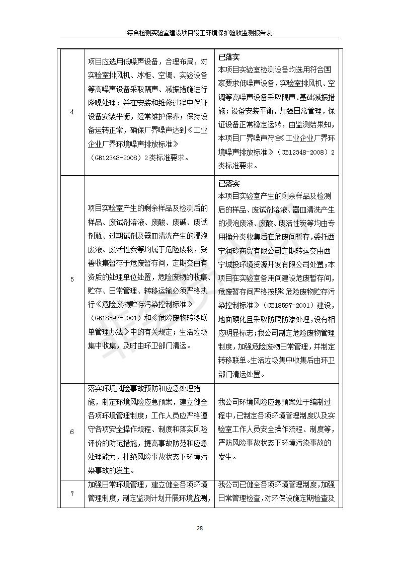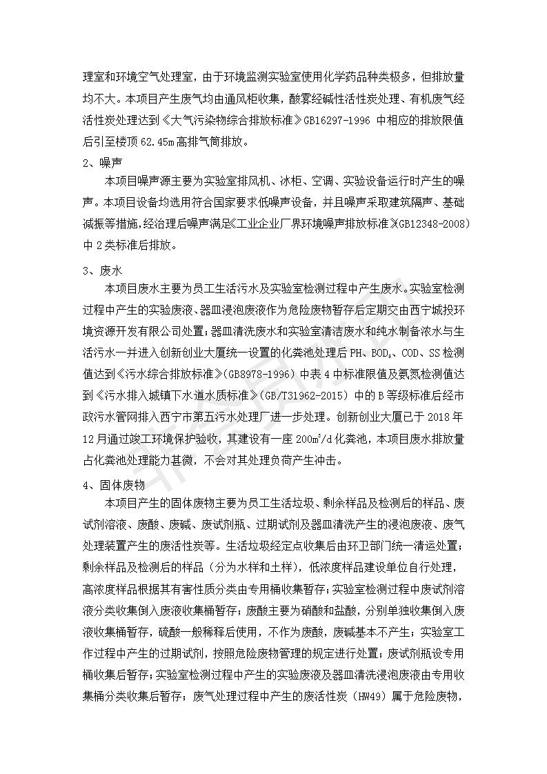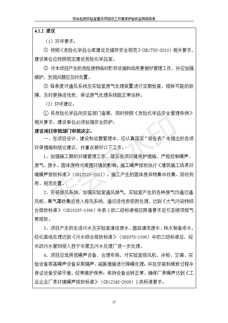 根據(jù)中華人民共和國國務(wù)院令第682號《國務(wù)院關(guān)于修改〈建設(shè)項(xiàng)目環(huán)境保護(hù)管理?xiàng)l例〉的決定》和《建設(shè)項(xiàng)目竣工環(huán)境保護(hù)驗(yàn)收暫行辦法》(國務(wù)院令682號),綜合檢測實(shí)驗(yàn)室建設(shè)項(xiàng)目(包括竣工環(huán)境保護(hù)驗(yàn)收監(jiān)測報告表和驗(yàn)收意見)公示如下。 一、項(xiàng)目名稱:綜合檢測實(shí)驗(yàn)室建設(shè)項(xiàng)目 二、地點(diǎn):西寧市經(jīng)濟(jì)技術(shù)開發(fā)區(qū)生物科技產(chǎn)業(yè)園區(qū)創(chuàng)新創(chuàng)業(yè)大廈南區(qū)15、16層 六、聯(lián)系電話:0971-6515411 七、公示時間:二〇一九年十一月十九日至二〇一九年十二月十六日 公示期間,對上述公示內(nèi)容如有異議,請以書面形式反饋,個人須署真實(shí)姓名,單位須加蓋公章。