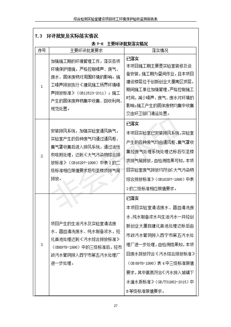 綜合檢測實(shí)驗(yàn)室建設(shè)項(xiàng)目竣工環(huán)境保護(hù)驗(yàn)收監(jiān)測報告表公示發(fā)布日期:(2019-11-19) 點(diǎn)擊次數(shù):2848 |