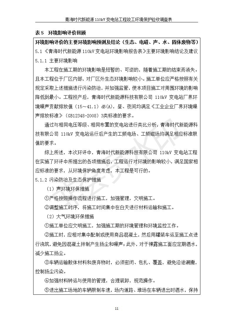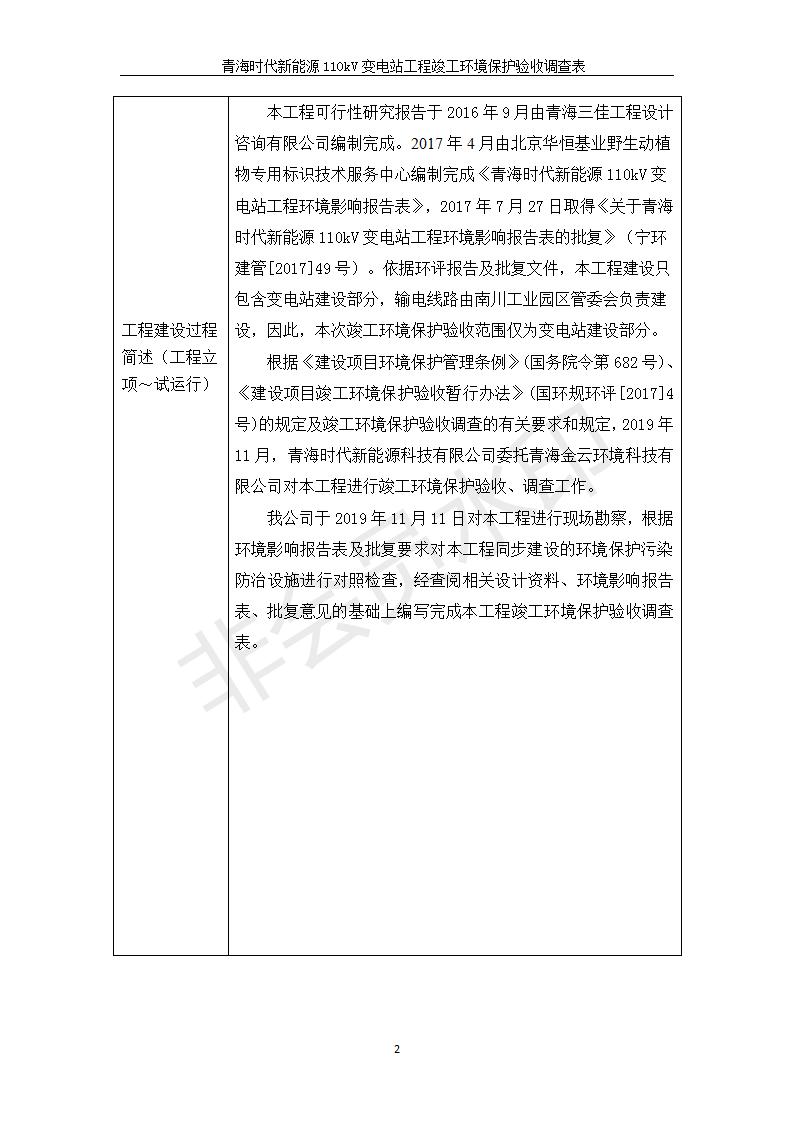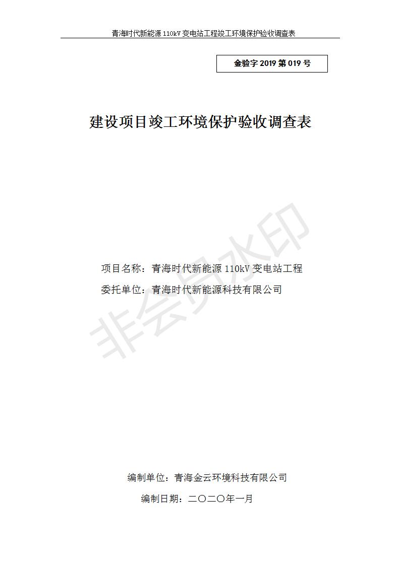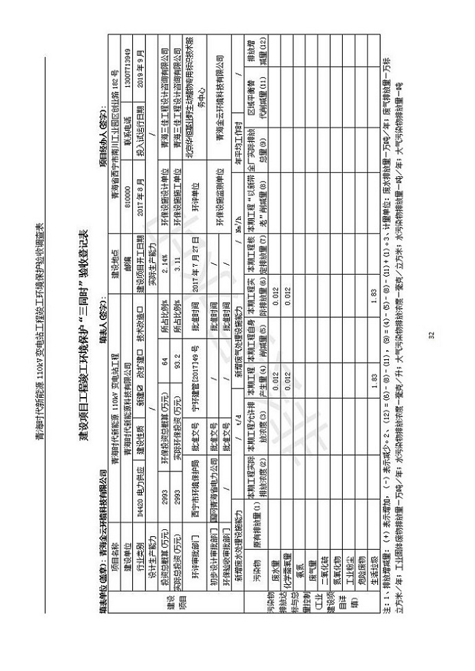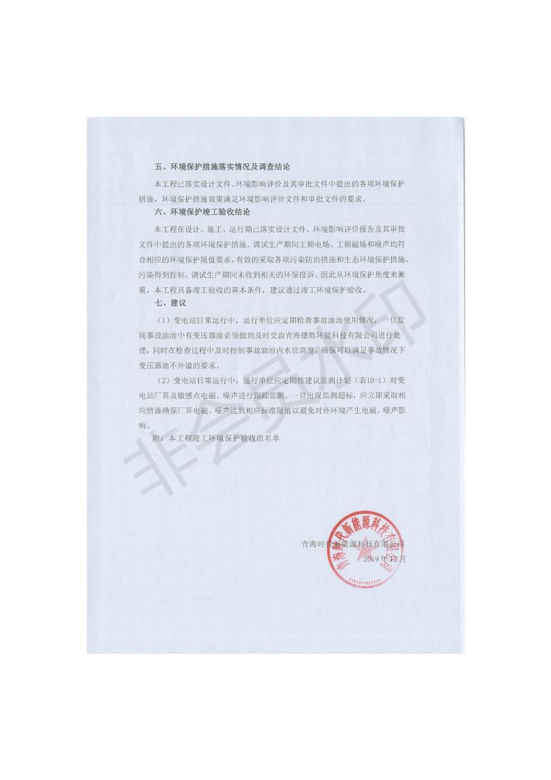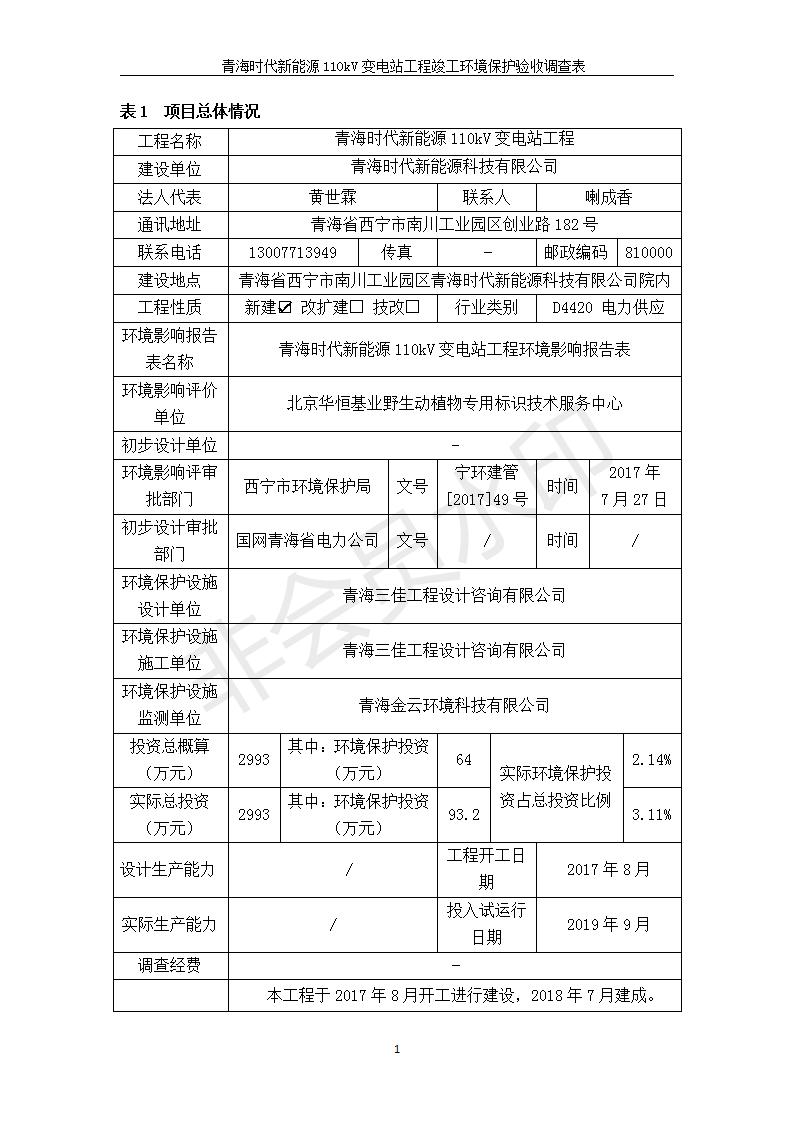 青海時(shí)代新能源110kV變電站工程竣工環(huán)境保護(hù)驗(yàn)收調(diào)查表公示發(fā)布日期:(2020-1-14) 點(diǎn)擊次數(shù):2631 |