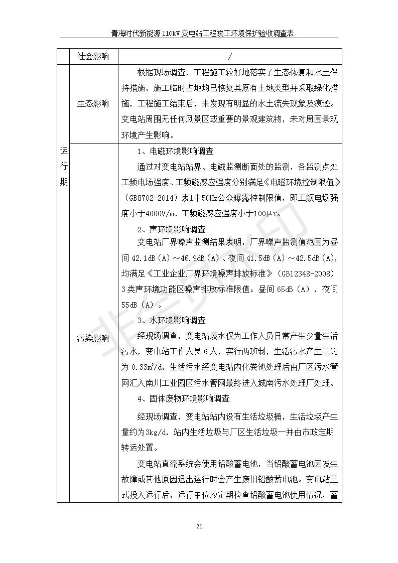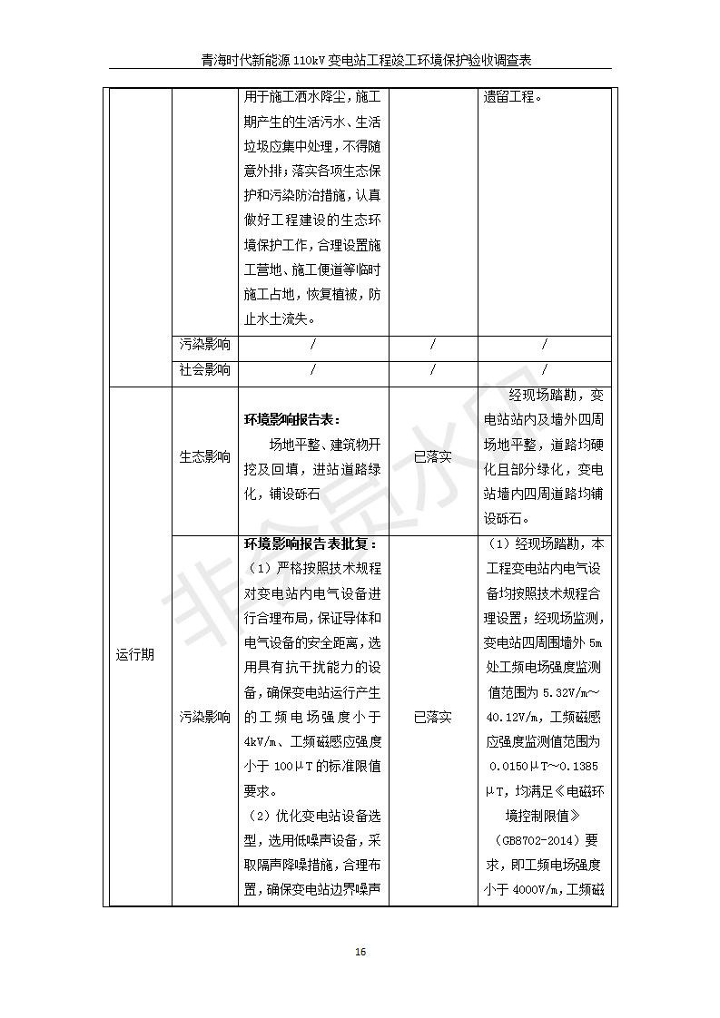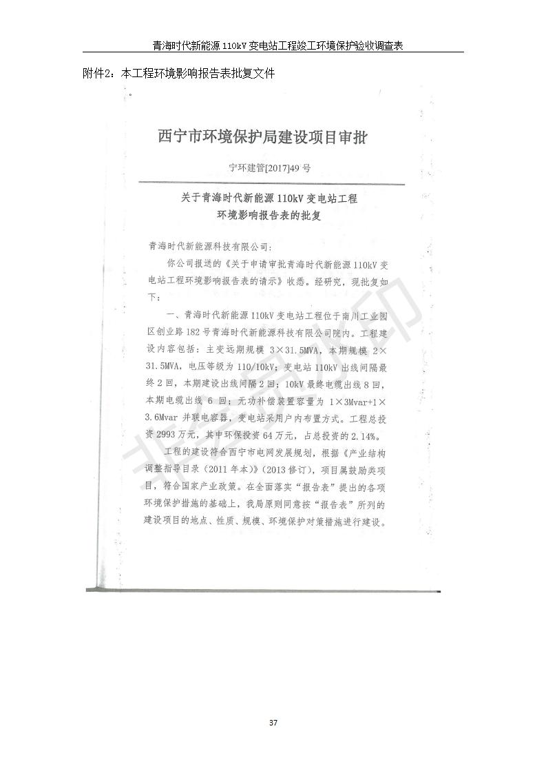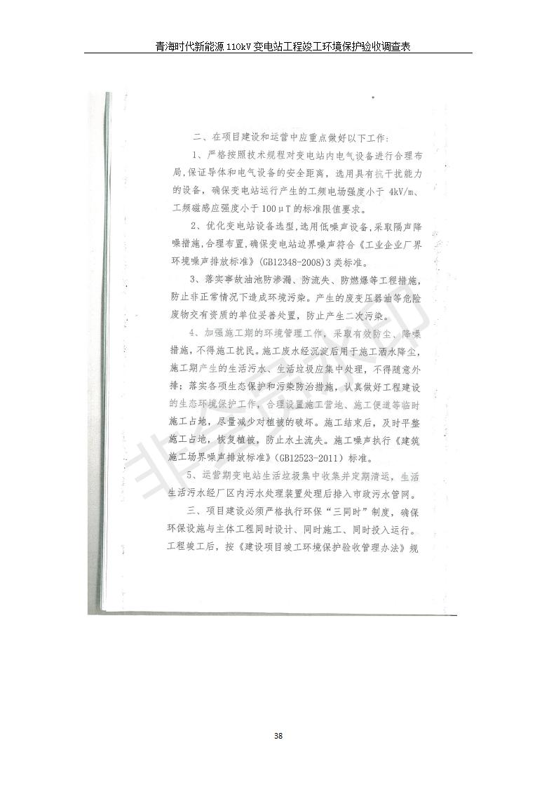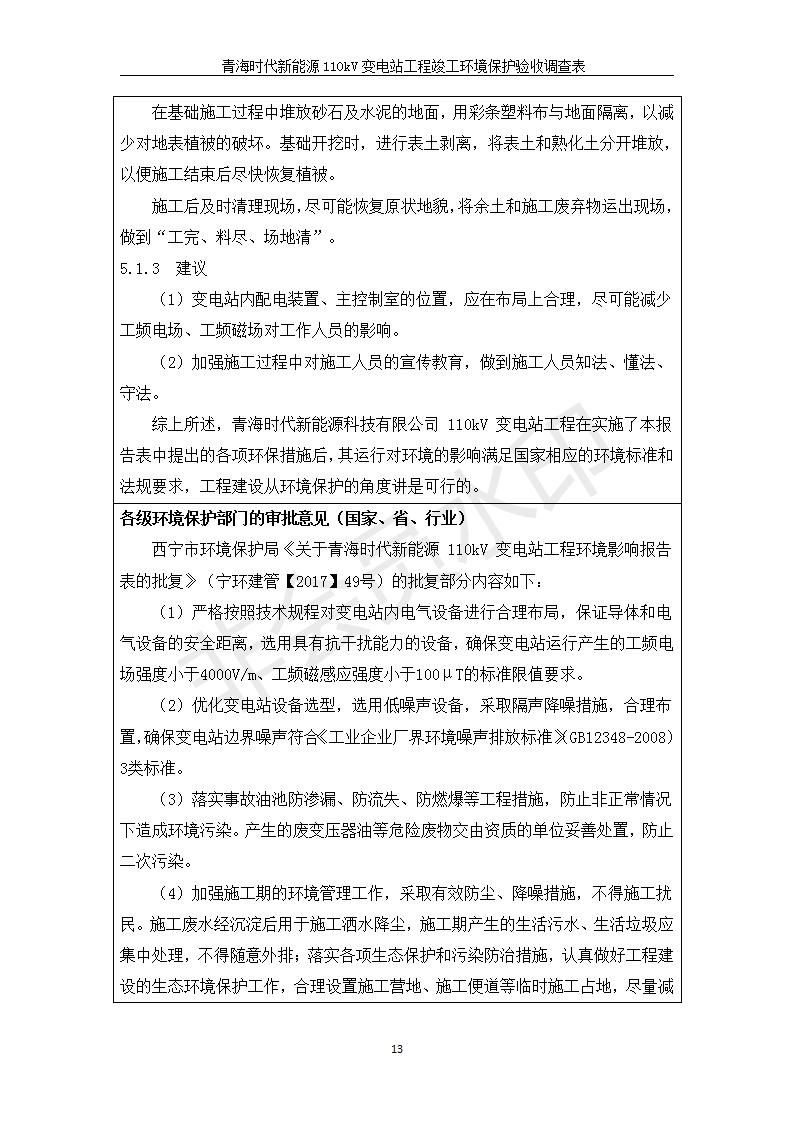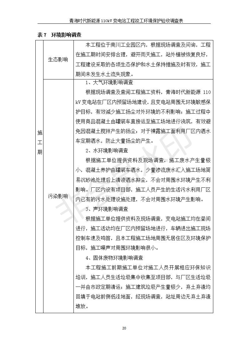 青海時(shí)代新能源110kV變電站工程竣工環(huán)境保護(hù)驗(yàn)收調(diào)查表公示發(fā)布日期:(2020-1-14) 點(diǎn)擊次數(shù):2631 |
