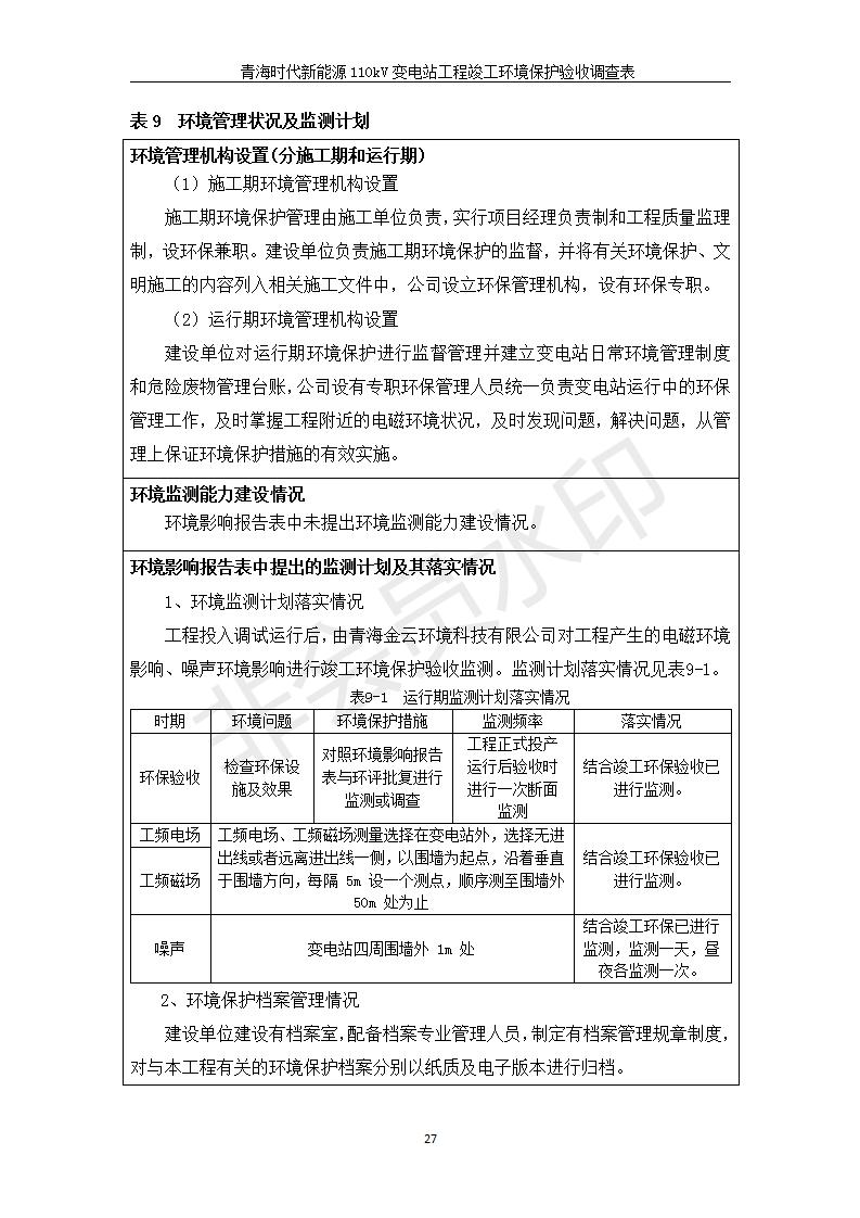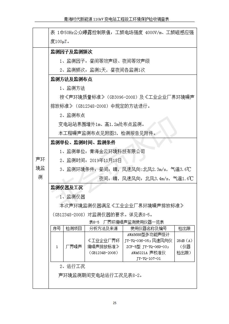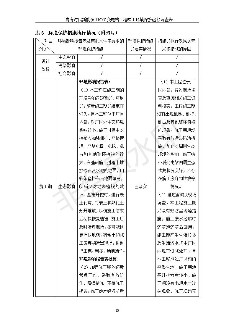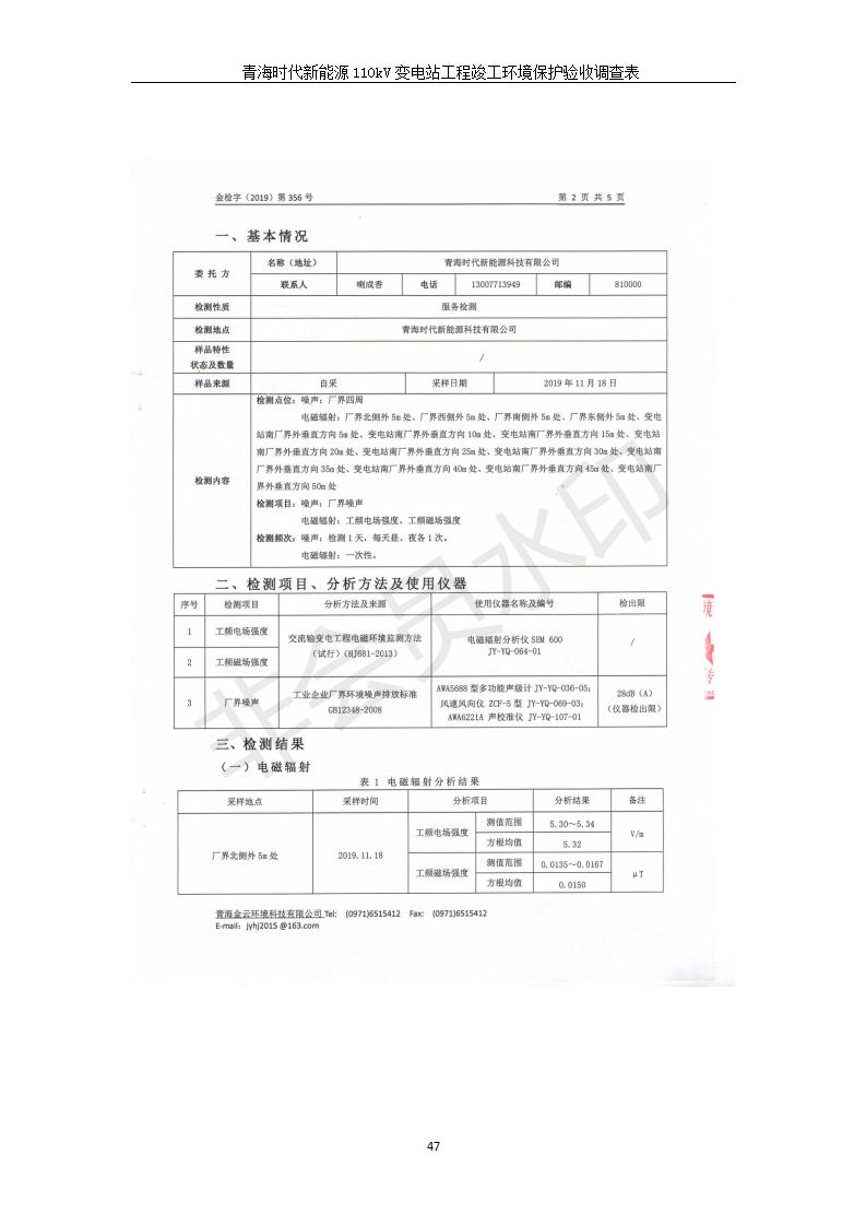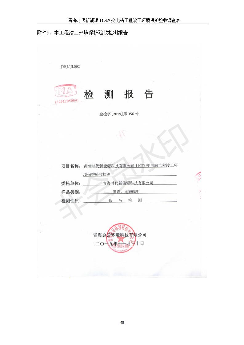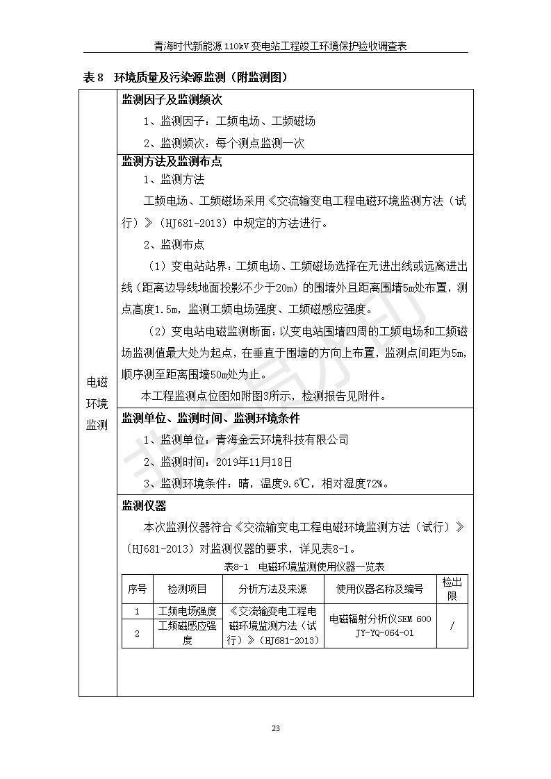 青海時(shí)代新能源110kV變電站工程竣工環(huán)境保護(hù)驗(yàn)收調(diào)查表公示發(fā)布日期:(2020-1-14) 點(diǎn)擊次數(shù):2631 |