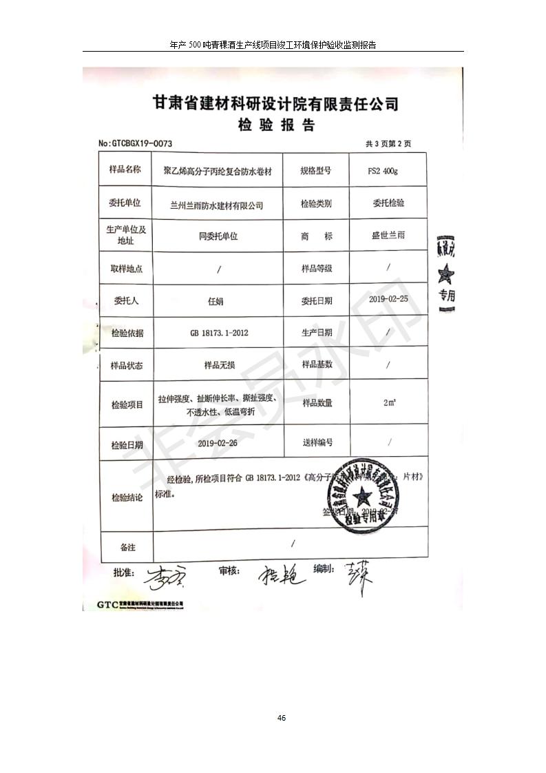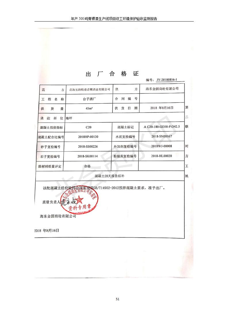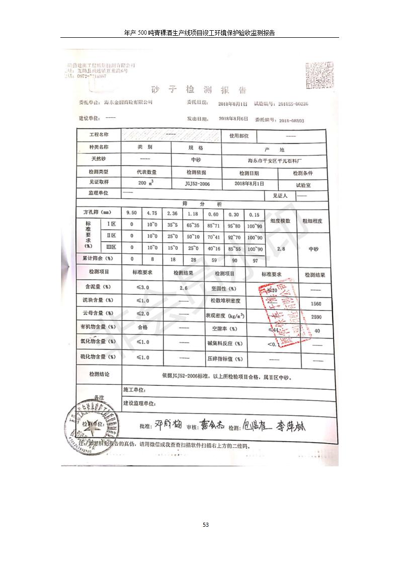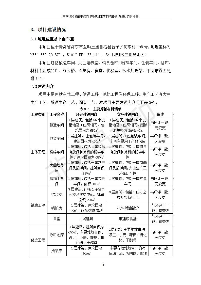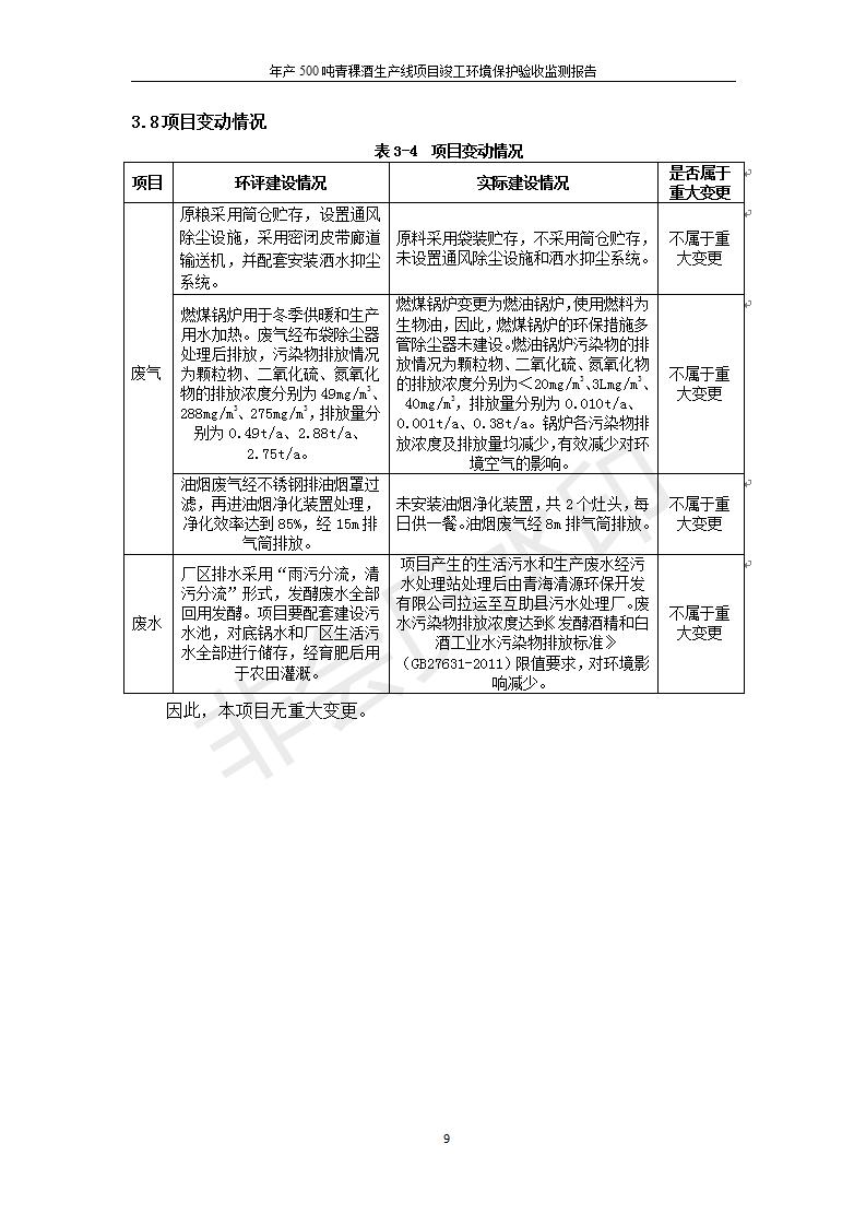 根據(jù)中華人民共和國國務(wù)院令第682號《國務(wù)院關(guān)于修改〈建設(shè)項(xiàng)目環(huán)境保護(hù)管理?xiàng)l例〉的決定》和《建設(shè)項(xiàng)目竣工環(huán)境保護(hù)驗(yàn)收暫行辦法》(國務(wù)院令682號),綜合檢測實(shí)驗(yàn)室建設(shè)項(xiàng)目(包括竣工環(huán)境保護(hù)驗(yàn)收監(jiān)測報告表和驗(yàn)收意見)公示如下。 一、項(xiàng)目名稱:青;ブ⑶囡茦I(yè)有限公司年產(chǎn)500噸青稞酒業(yè)生產(chǎn)線建設(shè)項(xiàng)目 二、地點(diǎn):青海省海東市互助土族自治縣臺子鄉(xiāng)河?xùn)|村198號