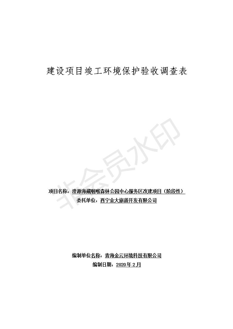 湟源海藏咽喉森林公園中心服務(wù)區(qū)改建項(xiàng)目(階段性)竣工環(huán)境保護(hù)驗(yàn)收調(diào)查表發(fā)布日期:(2020-4-29) 點(diǎn)擊次數(shù):2963 |