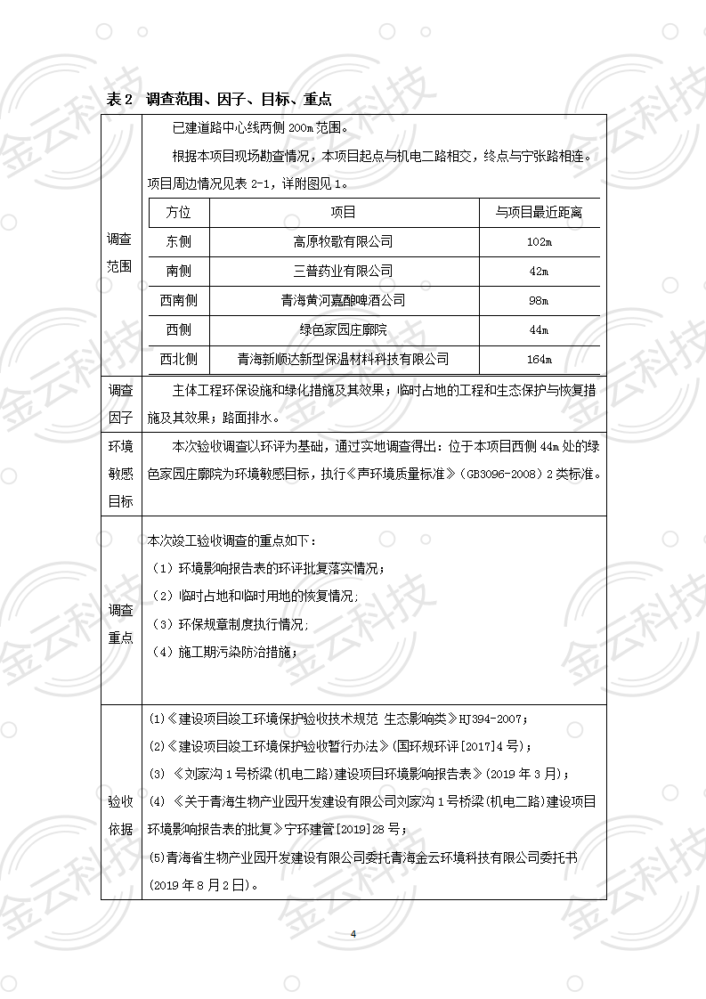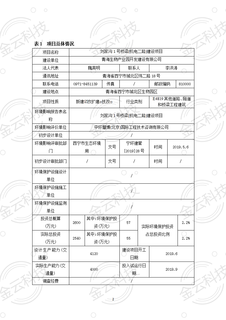 根據(jù)中華人民共和國國務(wù)院令第682號《國務(wù)院關(guān)于修改〈建設(shè)項目環(huán)境保護(hù)管理條例〉的決定》和《建設(shè)項目竣工環(huán)境保護(hù)驗收暫行辦法》(國務(wù)院令682號),劉家溝1號橋梁(機電二路)建設(shè)項目竣工環(huán)境保護(hù)驗收調(diào)查表,(包括竣工環(huán)境保護(hù)驗收調(diào)查表和驗收意見)公示如下。 一、項目名稱:劉家溝1號橋梁(機電二路)建設(shè)項目竣工環(huán)境保護(hù)驗收調(diào)查表 二、地點:青海省西寧市城北區(qū)生物園區(qū) 三、建設(shè)單位:青海生物產(chǎn)業(yè)園開發(fā)建設(shè)有限公司 四、建設(shè)內(nèi)容:本項目主要建設(shè)內(nèi)容為橋梁工程、接線路基等工程。項目南北走向,北起機電二路,南至寧張路,項目全長150m. 五、聯(lián)系人:張工 六、聯(lián)系電 話:0971-6515411 七、公示時間:二〇二〇年六月二日至二〇二〇年六月三十日 公示期間,對上述公示內(nèi)容如有異議,請以書面形式反饋,個人須署真實姓名,單位須加蓋公章。 |